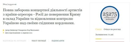 Зеленський розгляне петицію про заборону гастролей російських артистів в Україні. А що думаєте ви?