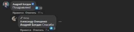 Першим з тих, хто привітав екснардепа став колишній глава Офісу президента Андрій Богдан.
