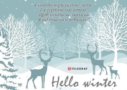 Взимку дійсно є, за що любити. Саме тому "Телеграф" підготував для вас яскраві вітальні листівки з першим днем зими, які ви можете надіслати своїм рідним та близьким. Яскрава листівка з початком зими порадує ваших друзів і нагадає їм про початок прекрасної казкової пори.