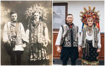 Весільна традиція, яка майже століття прожила в одній родині. У Прикарпатті у Коломиї молода пара повторила фото предків у національному одязі. Один із елементів — сімейна цінність. Столітній кептар — розшитий жилет із овечої шкіри з аплікаціями та декором.