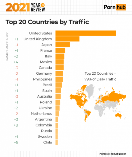 Про це свідчать дані звіту, опублікованого сайтом Pornhub за підсумками 2021 року.
