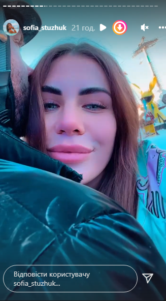 Так, на одній "історії" Стужук частково показала обличчя хлопця під час обіймів.