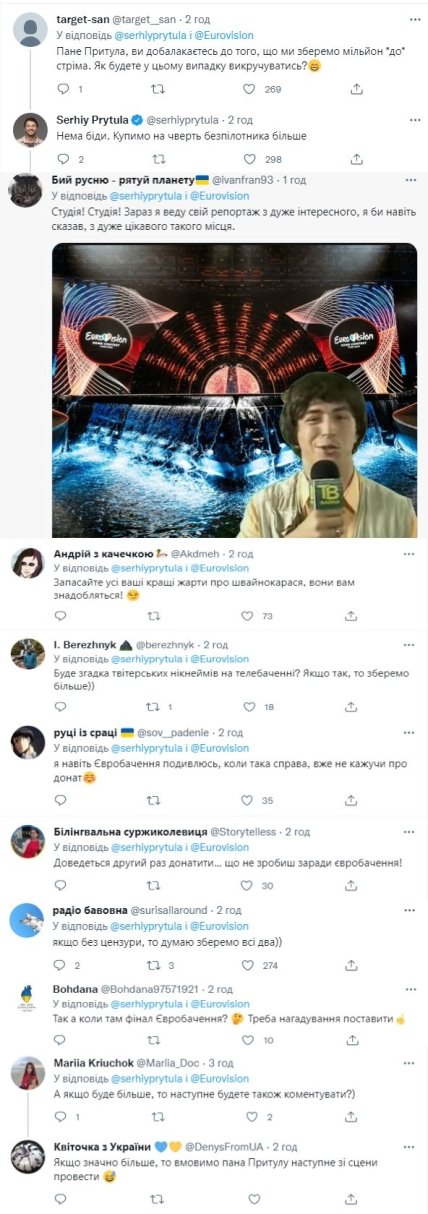 "Тому угода: я прокоментую фінал Євробачення, а ви насипете нам за час стріму мільйон гривень для української армії. Згода?", — написав він.