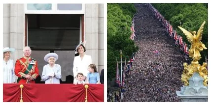 Королева та члени королівської родини, як завжди, з’явилися на балконі Букінгемського палацу, де спостерігали за прольотом ВПС Великої Британії. Це буде перший ювілей королеви без її чоловіка, принца Філіпа, який помер минулого року.