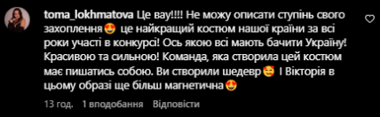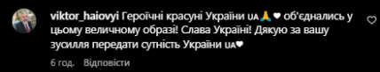 В коментарях до посту українці висловили свою думку щодо національного костюма. Підписники подякували команді художниці за те, що вони змогли передати героїзм і силу духу українців під час війни. Образ назвали символічним і неймовірним.