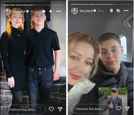 Далі у сторіз співачки бачимо кілька фото із сином. На перших — вони святково одягнені, щоправда — обоє у чорне, наступні фото зроблені вже у машині.