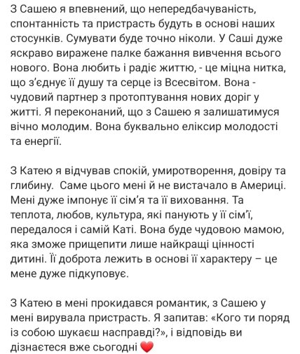 "З Катею в мені прокидався романтик, з Сашею у мені вирувала пристрасть. Я запитав: "Кого ти поруч із собою шукаєш насправді?", і відповідь ви дізнаєтеся вже сьогодні", — підсумував Топольський.