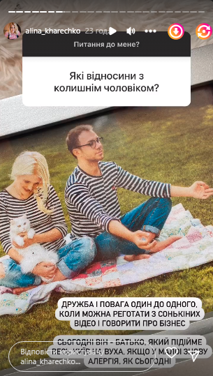 Про це вона повідомила в сторіз Інстаграму, відповідаючи на запитання підписників. За словами Харечко, в них залишилась повага один до одного і їм завжди є про що поговорити, особливо що стосується їхньої спільної дитини, 6-річної доньки Софії.