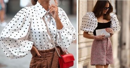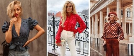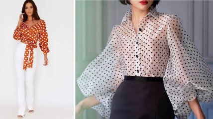У моді на 2023 рік блузки в горошок як з довгим, так і з коротким рукавом. Їх можуть доповнювати волани, рюші чи великі ґудзики.