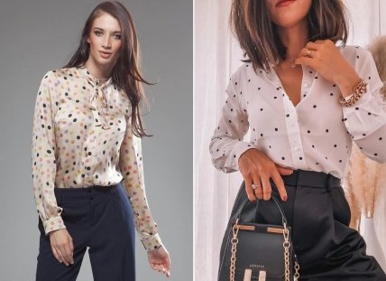 Модними будуть моделі, в яких горошини розташовані рівномірно по всій площі поверхні. Такі блузки підійдуть для створення ділового образу. Не гіршим варіантом стануть і блузи, в яких малюнок розкиданий у хаотичному порядку. Можна обирати навіть ті, де горошини різнокольорові й складаються у цікаві візерунки.