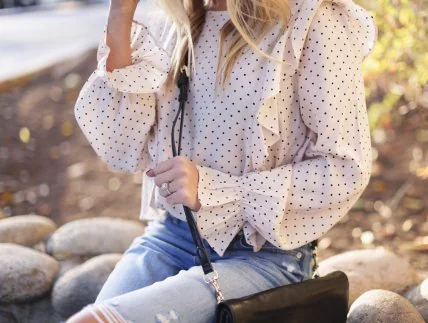 У моді на 2023 рік блузки в горошок як з довгим, так і з коротким рукавом. Їх можуть доповнювати волани, рюші чи великі ґудзики.