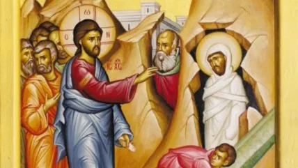 За біблійними переказами, Христу повідомили, що його праведний друг Лазар помер 4 дні тому. Однак Божий Син запевняв, що його друг просто заснув, але не помер. Ісус підійшов до печери-склепу і наказав прибрати камінь від входу. Коли це зробили, син Божий вигукнув "Лазаре, йди геть!", і його друг повернувся до життя і вийшов із печери.