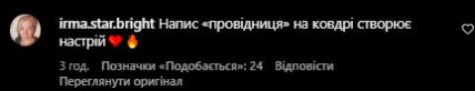 Такий цікавий момент не оминув українську аудиторію в мережі. У коментарях написали, що напис на ковдрі створює настрій. "Провідниця на відпочинку. Ранок у Рахові." Полотно, масло. Автор — Орландо Блум. Стиль моделі — "Залізна крамниця" (офіційний мерч-шоп "Укрзалізниці" — ред.), — написав у Фейсбуці речник пасажирського напрямку "Укрзалізниці" Олександр Шевченко.