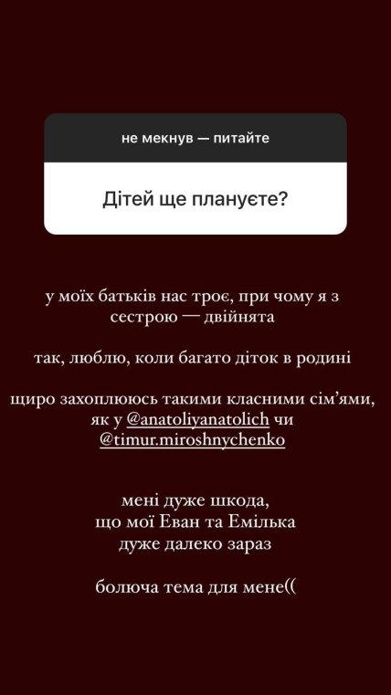 Зірка відповів на запитання своїх підписників в Інстаграмі, чи планує він ще раз стати батьком. "У моїх батьків нас троє, причому я з сестрою — двійнята. Так, люблю, коли багато діток в родині", — відписав Остапчук.