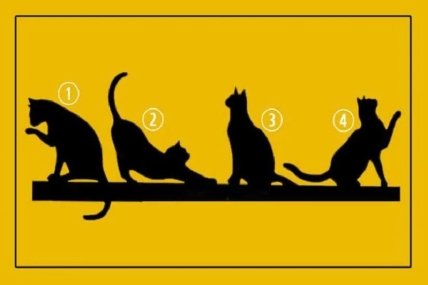 Отже, погляньте на силуети кішок і оберіть ту, яка найбільше привернула вашу увагу, не думайте надто багато. Найчастіше найвірнішим є той вибір, який ви робите майже автоматично. У цьому випадку ви зможете дізнатися, яка ваша ціль у житті. Пам’ятайте, у цьому тесті немає правильного чи неправильного варіанта.