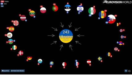 Зазначимо, що під категорією "решта світу" маються на увазі голоси жителів країн, які не брали участь у конкурсі, але могли вибрати фаворита в додатку та на сайті. Це нововведення 2023 року.