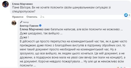 Виправдатись спробувала і дружина Павліка Катерина Реп'яхова. Вона повідомила, що допустила помилку та не повинна була публікувати своє повідомлення, а також поскаржилася на хвилю критики у свій бік.