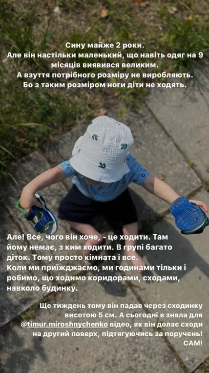 "Взуття потрібного розміру не виробляють, тому що з таким розміром ноги діти ще не ходять. Але все, чого він хоче, – ходити", – розповідала раніше Інна.