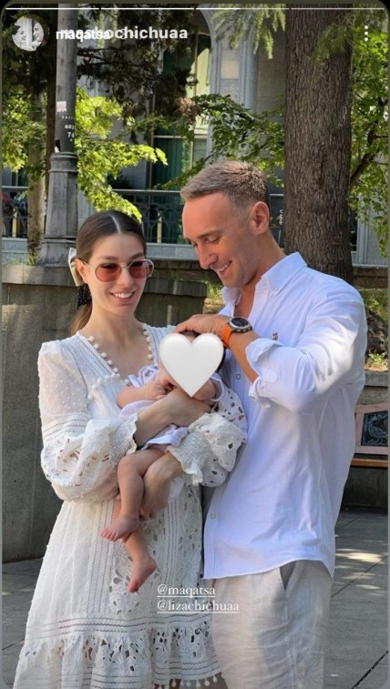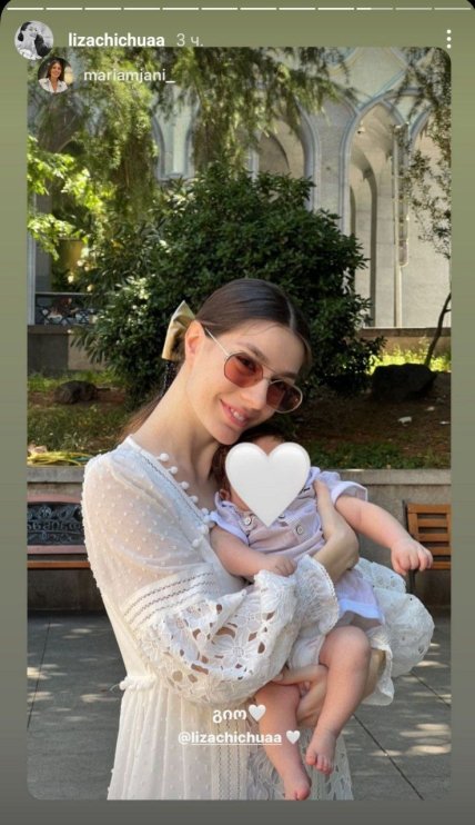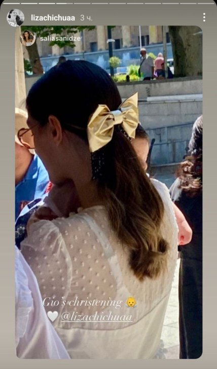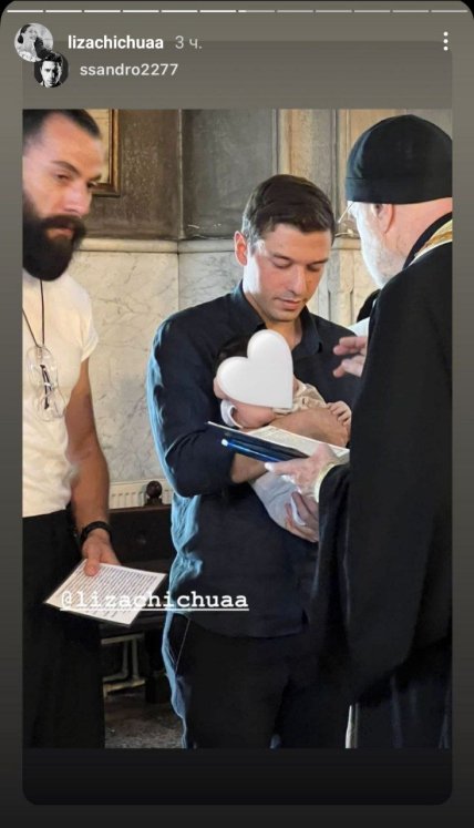 В Insta-stories Іраклі показав зворушливу фотографію, де стоїть з коханою, яка тримає на руках малюка. Він з усмішкою дивиться на сина та гладить його по голові. 21-річна Ліза обрала для свята легку ажурну сукню білого кольору, а волосся зібрала у хвостик, одягнувши золотистий бант. Іраклі був у білій сорочці та бежевих штанах.