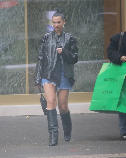 У стилі 90-х: Дуа Ліпа захопила стильним образом зі шкіряною курткою на прогулянці Лондоном (фото)