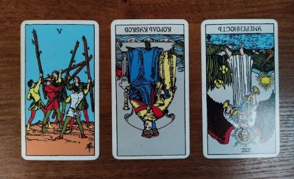 У цьому положенні карта попереджає, що незабаром Ви можете втратити щось, а також зустрітися з нечесністю, підступністю та обманом. Будьте обережні при спілкуванні цього дня, хтось у Вашому оточенні може носити маску.