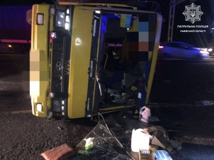 За наявною інформацією, всього в маршрутці знаходилося близько 40 осіб, від зіткнення з вантажівкою транспортний засіб перекинувся на бік.