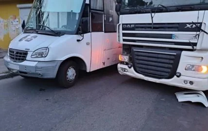 В результаті активних дій пасажирів маршрутки постраждала передня частина фури.