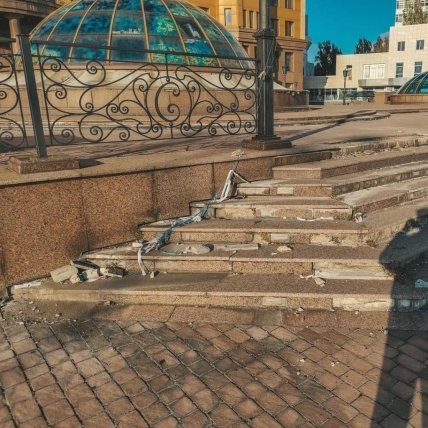 Ще гіршою є ситуація з будинком культури у місті Харцизьк (Донецька область), який з 2014 року контролюється окупантами. Там приміщення палацу культури ім. Карла Маркса обсипається, а входи до приміщення не лише зруйновані, а й починають поступово заростати кущами.