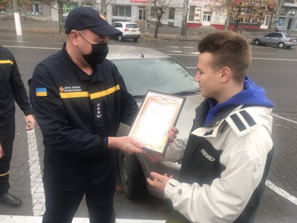 І, звичайно, відреагували на вчинок юнака у Державній службі з надзвичайних ситуацій. Олександру Оганьяну вручили грамоту за підписом начальника обласного главку ДСНС Олексія Лепського та нагородили цінним подарунком.
