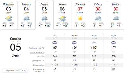 Так, згідно з наявними даними, вже у середу, 5 січня, в Ужгороді температура повітря прогріється до +10 градусів тепла. Увесь день буде хмарно, дощитиме. Ближче до обіду опади можуть послабнути, але увечері підуть з новою силою.