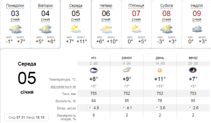Також зазначається, що 5 січня, буде вітряно, подекуди з поривами від 15 до 24 метрів на секунду.