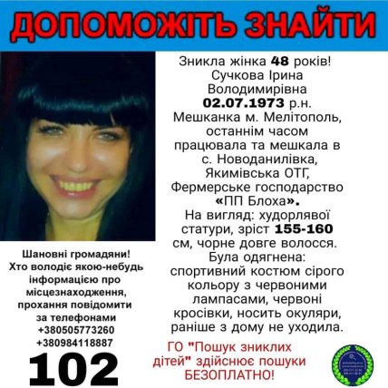 Шоковані не лише жителі смт Якимівка та навколишніх сіл Мелітопольського району Запорізької області: одразу слідом за виявленим тілом 11-річного учня школи-інтернату Максима Самофалова та затриманням підозрюваних у вбивстві стало відомо про трагічну долю його землячки – Ірини Сучкової. 48-річну жінку із села Новоданилівка поліція та волонтери розшукували з кінця вересня. І ось під час досудового розслідування один із підозрюваних у вбивстві дитини зізнався в тому, що вони з подільником розправилися і з нею.