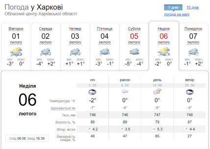 Жителям Харкова 6 лютого варто очікувати на хмарну погоду з проясненнями та можливий сніг. Температурні стовпчики вночі не опускатимуться нижче 2 градусів морозу, вдень утримуватимуться на нулі.
