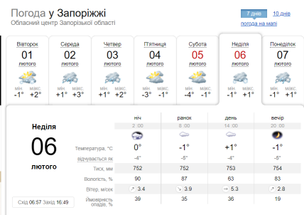 У Запоріжжі наступна неділя буде також теплішою: уночі синоптики прогнозують не більше 1 градусу тепла, вдень — +1. Можливі опади у вигляді снігу.