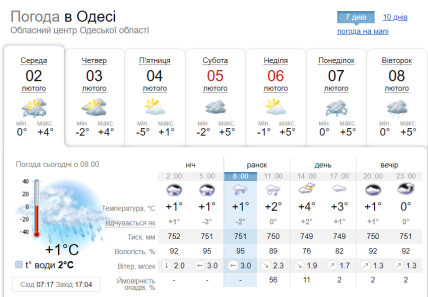 В Одесі тепло: вночі температура повітря триматиметься на нулі, вдень — до +4. Синоптики обіцяють мокрий сніг.