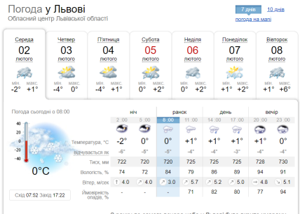 Так, у середу на заході країни синоптики прогнозують опади у вигляді снігу та мокрого снігу. Температурні показники коливатимуть від 7 морозу в нічні години і до -1…+1 градусу вдень.
