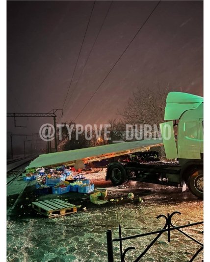У ніч на 3 лютого в Дубно на Рівненщині сталася серйозна аварія за участю поїзда та вантажної фури. Внаслідок зіткнення машиніст складу отримав серйозні травми.