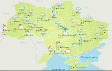 Трохи тепліше, до +4, буде на заході країни і на градус холодніше, до +2, у східних областях.