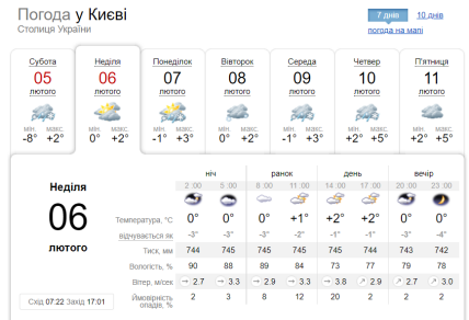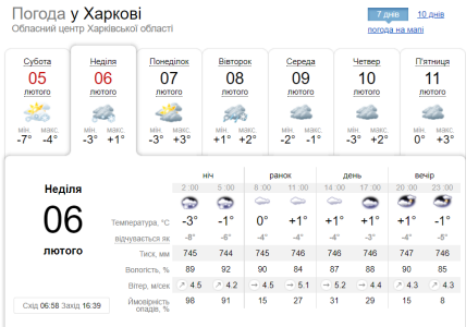 Так, за повідомленням українського гідрометцентру у неділю, 6 лютого, у східній частині країни очікується мокрий сніг, на заході — сніг із дощем.