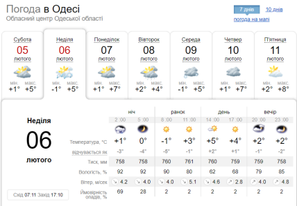 В Одесі на зміну ясній погоді, яка буде триматися вранці та вдень, прийде похмурий вечір. Уночі буде дощ зі снігом. Уночі очікується мінусова погода — -1, проте вдень значно тепліше — до +5 градусів.