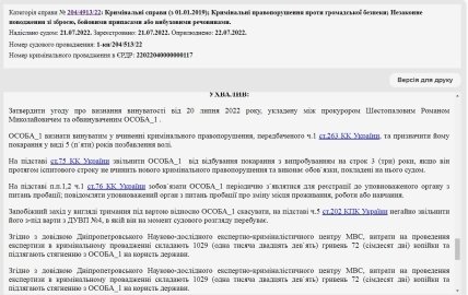 Так, у липні з ув’язнення було звільнено Артура Матраницького – авторитет визнав себе винним у зберіганні боєприпасів, під час затримання 26 березня у нього з собою була бойова граната РГД-5. У рамках статті 263 КК України Матраницький отримав 5 років із випробувальним терміном у 3 роки, вирок був ухвалений Червоногвардійським районним судом Дніпра 21 липня.