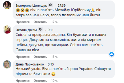 Попрощатися з героєм прийшли не лише рідні, а й багато військових льотчиків та представників Бучанської громади. "Неможливо визначити, яке кохання за життя було сильнішим: до України, до її неба — всі так тісно переплелися в долі", — зазначили на сторінці Бучанської міськради.