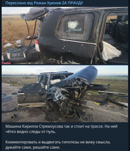 стремоусова розстріляли? З’явилися цікаві фото авто зі слідами куль