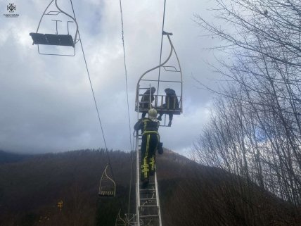 На одному з гірськолижних курортів Закарпаття під час роботи зламалася канатна дорога. Рятувальники дві години знімали туристів, які застрягли на підйомнику.