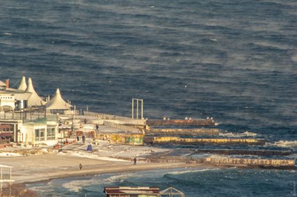 За словами свідків, через сильний мороз на пляжі зібралося не дуже багато людей. Вони могли на власні очі побачити море, що "летить" в небі.