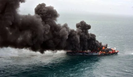Судно продовжує горіти — там могло бути до 2 млн барелів нафти