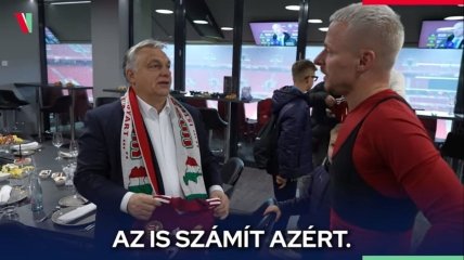 Як у вівторок, 22 листопада, пише видання Mandine, фанатський шарф Орбан натягнув на себе під час зустрічі з футболістом Балажем Джуджаком після його прощального матчу за угорську збірну.