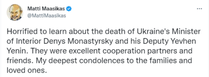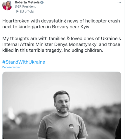 Трагедія з падінням вертольота у Броварах, внаслідок якої загинули 16 чоловік, включаючи міністра внутрішніх справ Дениса Монастирського, його першого заступника Євгена Єніна та держсекретаря відомства Юрія Лубковича, вразила не лише Україну, а й усю Європу.