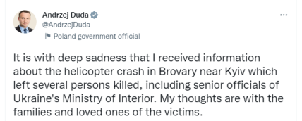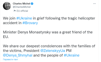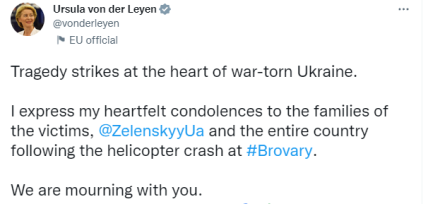 Кожен із вищезгаданих європейських лідерів висловив свої щирі співчуття рідним та близьким загиблих у цій жахливій авіакатастрофі у місті Бровари.