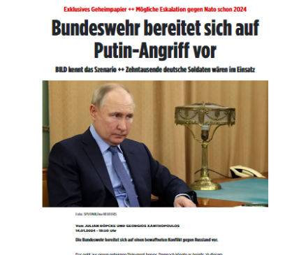 Видання Bild з посиланням на секретний документ Бундесверу повідомило, що Німеччина та НАТО нібито готуються до великого нападу Росії навесні 2025-го року. Події описуються місяць за місяцем, суть у тому, що росія ймовірно планує скористатися відсутністю лідера США протягом кількох тижнів після виборів, а також залучити Білорусь до нападу. Йдеться про період між відходом з посади президента США на початку листопада 2024 року і вступом на посаду наступника в січні 2025 року. Сценарій "Оборона Альянсу 2025" виглядає так: